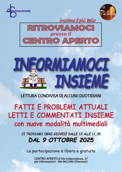 Ci si incontra ogni giovedì dalle ore 10 alle 11,30 presso il Centro Aperto di Via Indipendenza 27, a Sant’Eufemia (Bs)